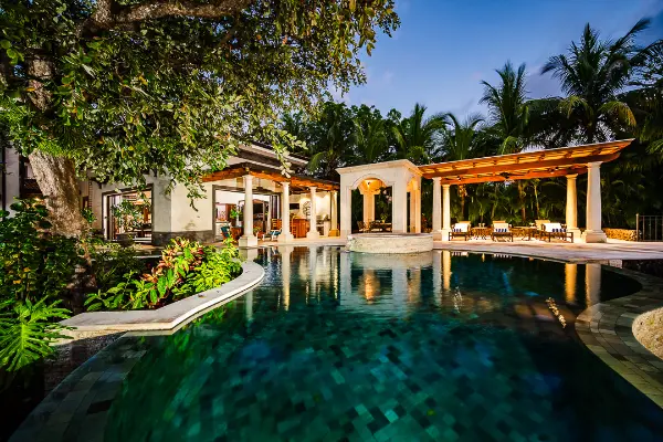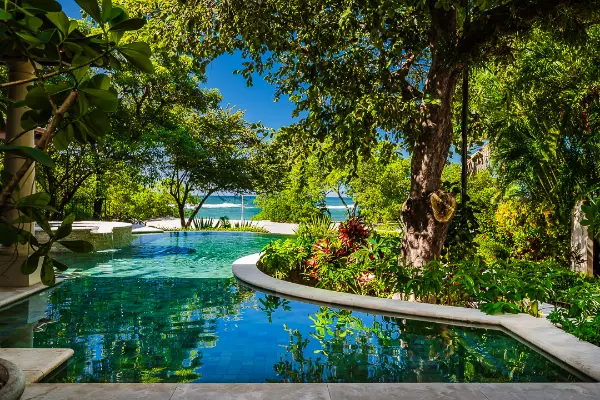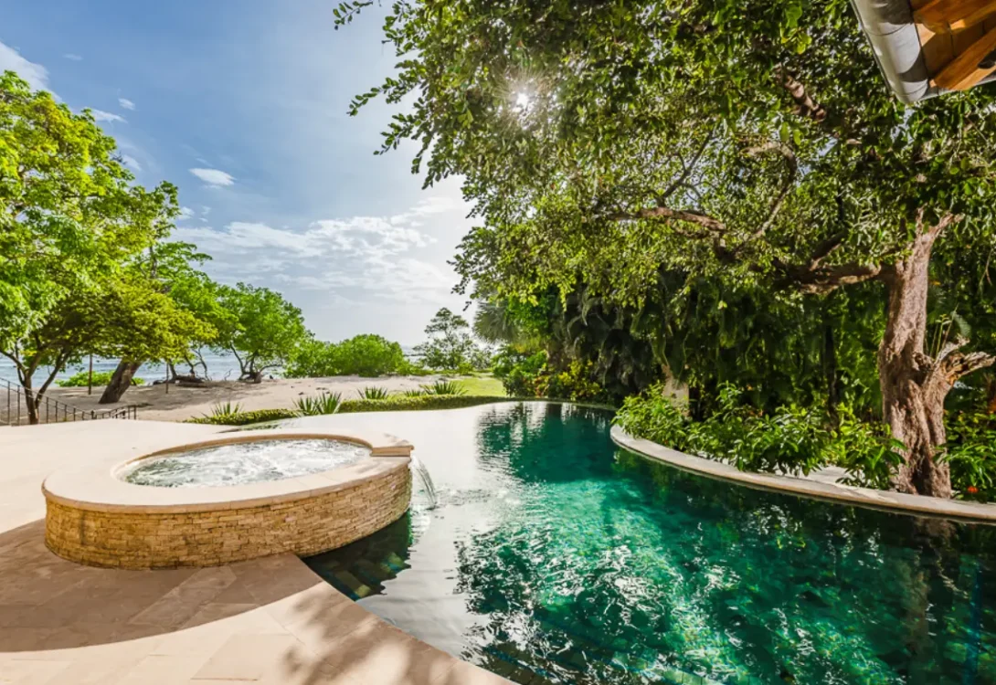 This beachfront paradise, where the rhythm of the waves is your lullaby. This extraordinary villa, nestled directly on the sand, boasts a custom infinity pool built around a majestic tree, offering a truly unique and unforgettable experience.