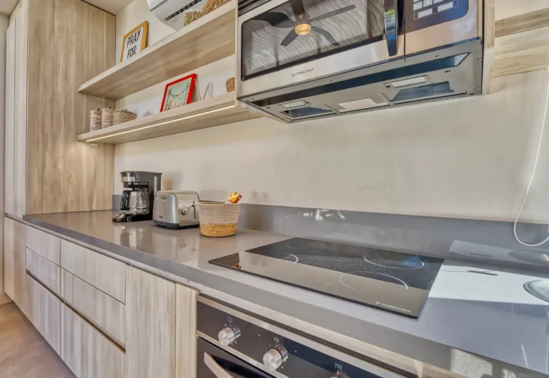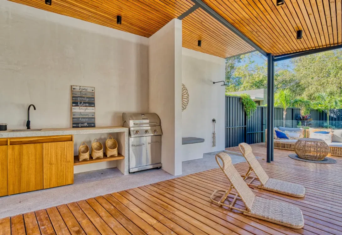 Private Pool, Outdoor living area with BBQ, Open floor plan, Fully Equipped Kitchen, 5 minute walk to town, High-Speed Internet, Security System