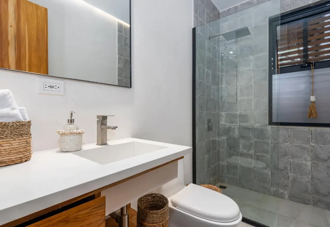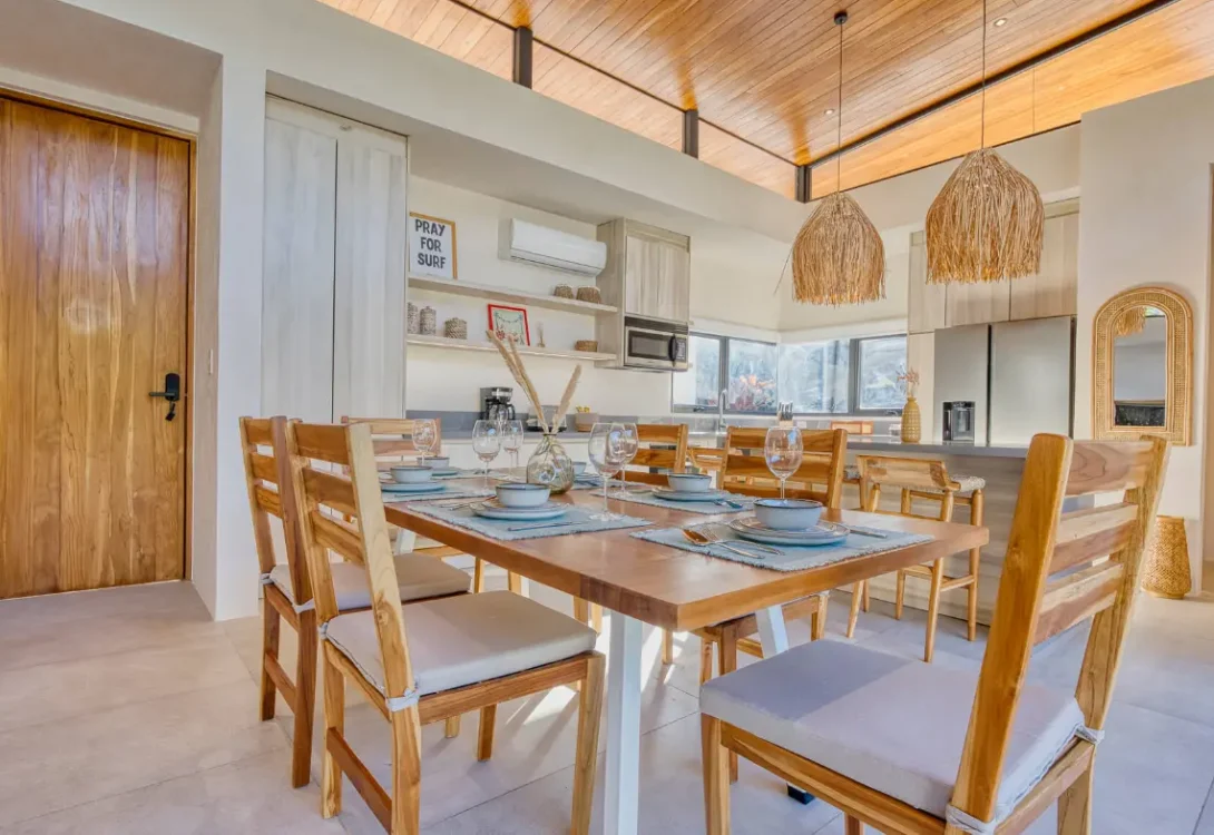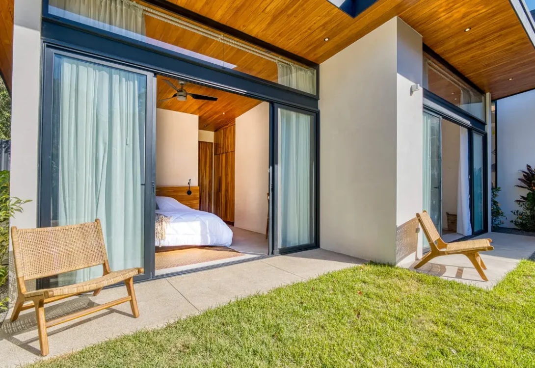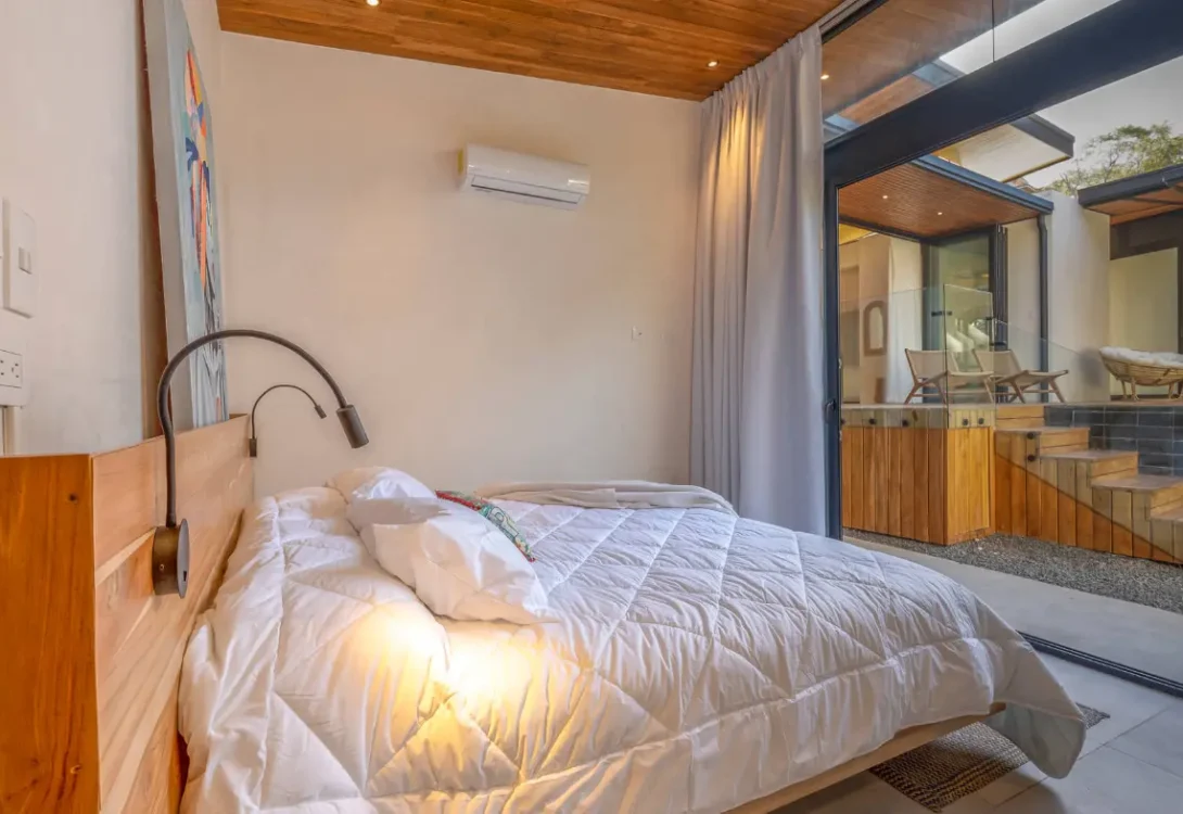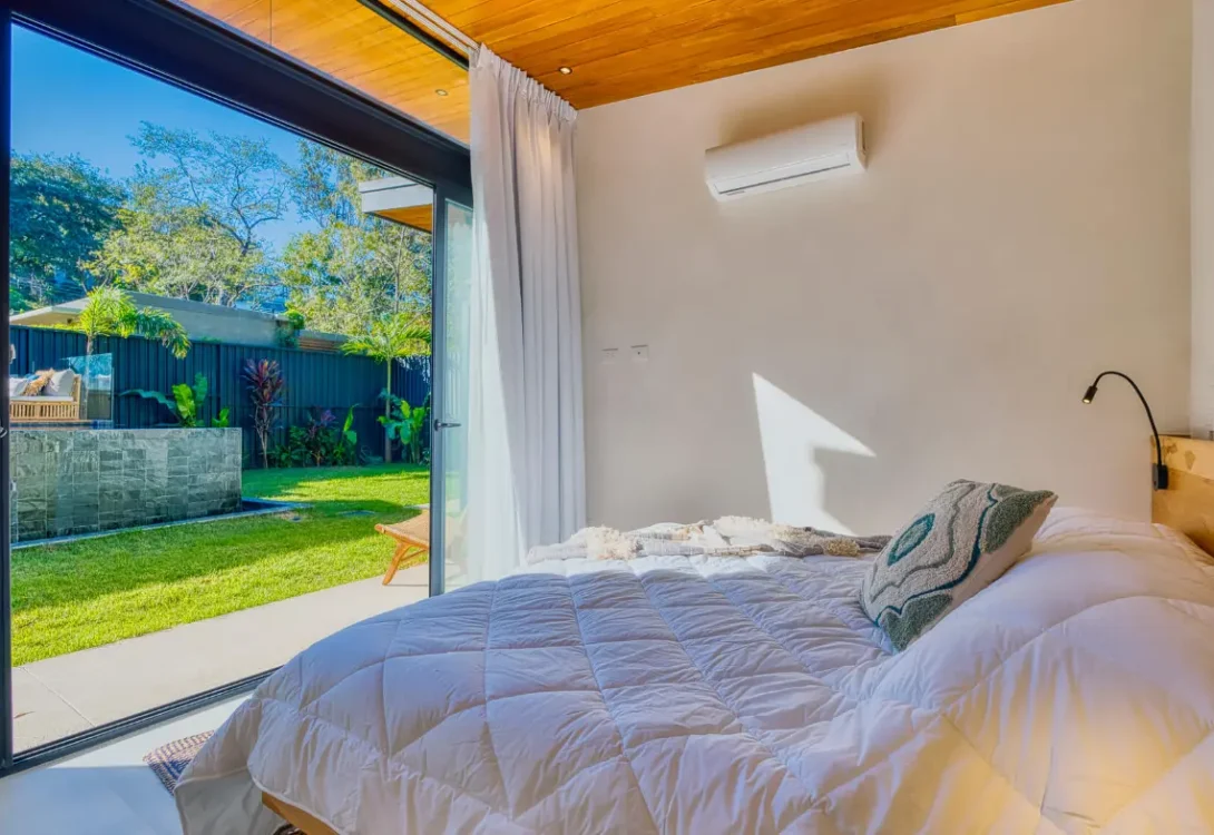 This brand new 3 bedroom, 3.5 bathroom luxury home is located on a quiet cul-de-sac in the heart of Tamarindo just a few minutes walk to restaurants, bars, shopping and beach. The open floor plan has floor to ceiling glass doors that seamlessly incorporate indoor/outdoor living leading to your private pool. The modern kitchen has all the amenities and a spacious dining and living area with a flat screen tv.
