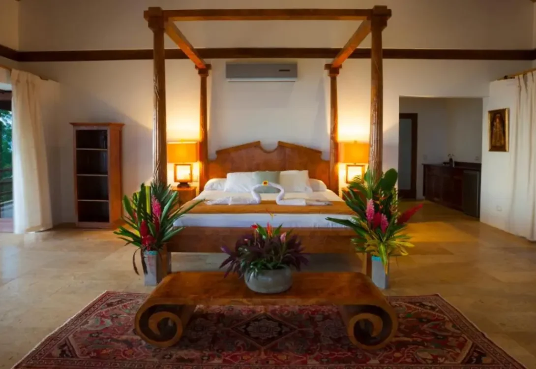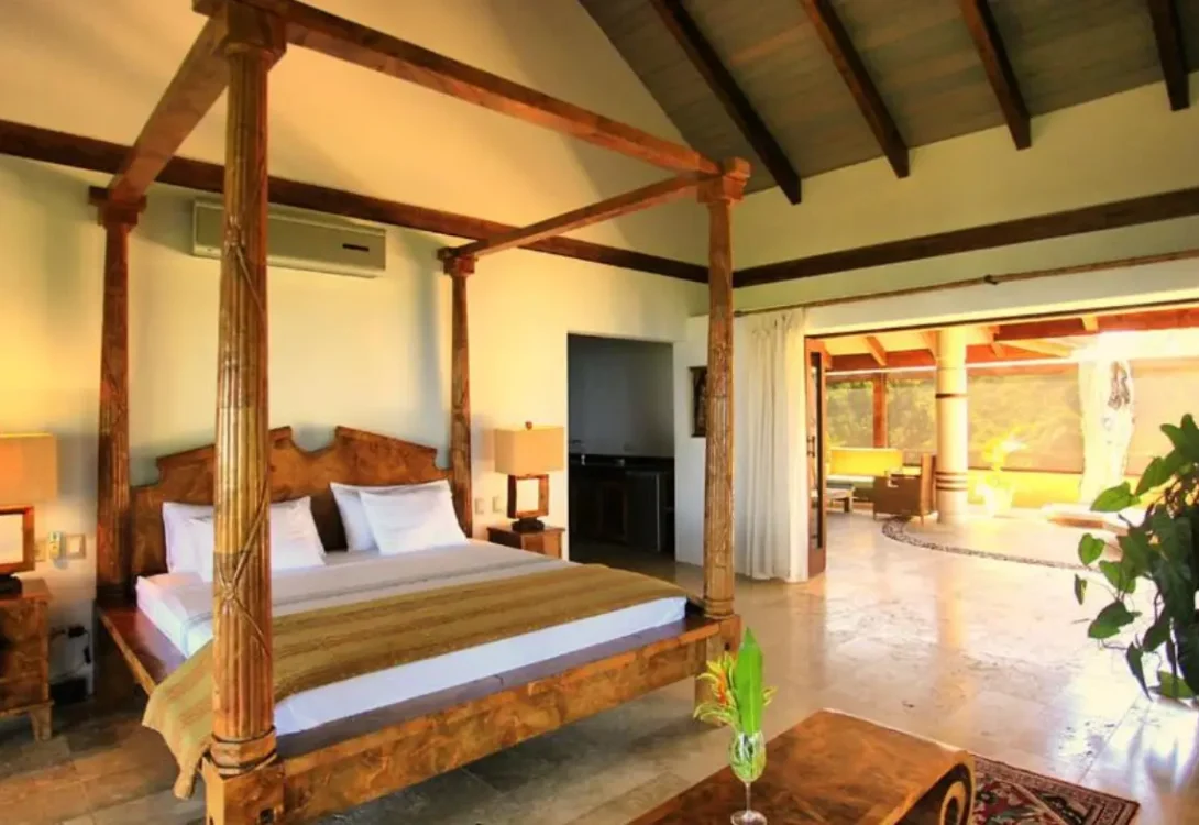Featuring five expansive master suites with king-size beds dressed with soft, elegant linens and ensuites fitted with bathtubs, Villa Nimbu guarantees complete comfort. Traditional wooden furnishings connect guests with their natural surroundings, while several bedroom bathrooms utilise stone basins, plant life and local driftwood to enhance the immersion in the Costa Rican environment.