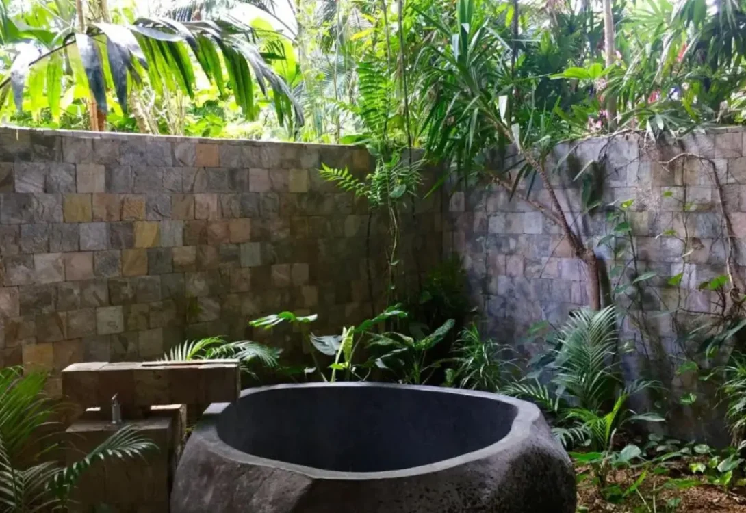 Designed with undisturbed privacy in mind, OCiO’s main villa features five well-designed, oversized master suites with private baths. Two of the suite bathrooms feature local driftwood tree trunks incorporated into the shower’s design, complementing the bathtubs’ natural stone composition.