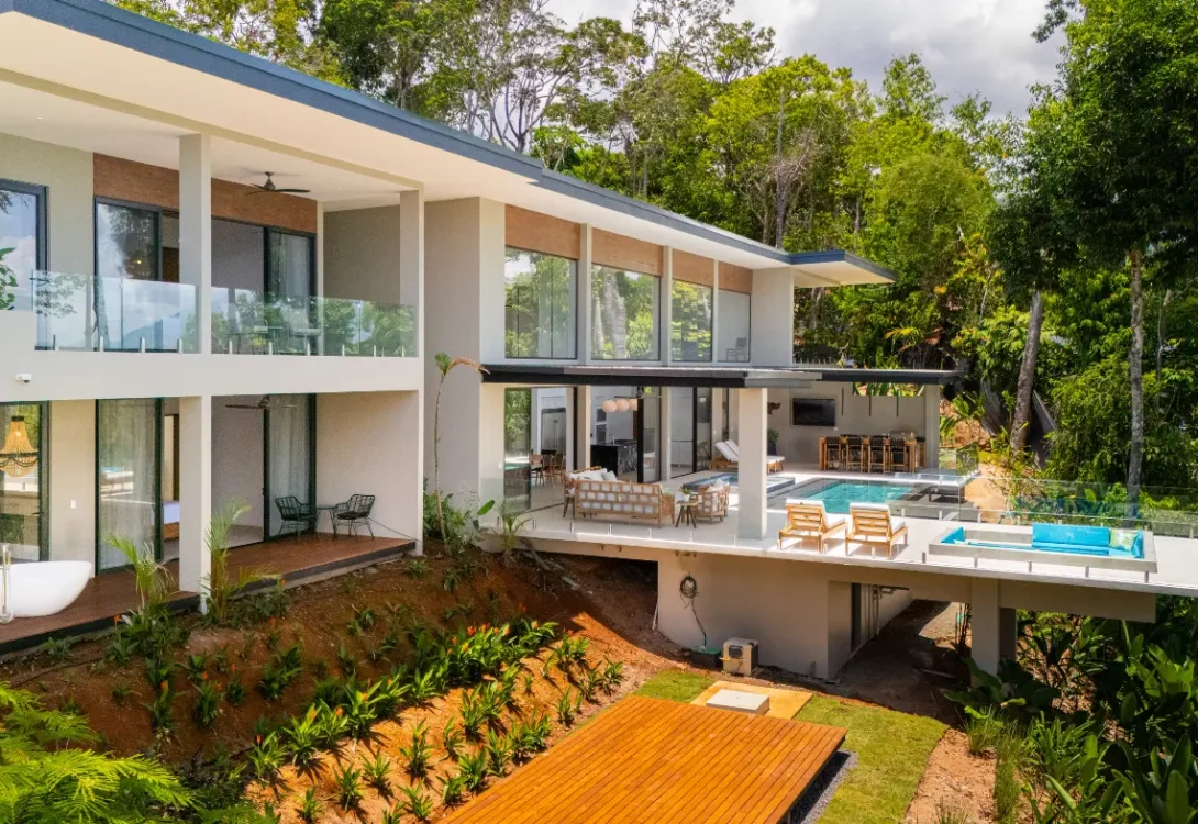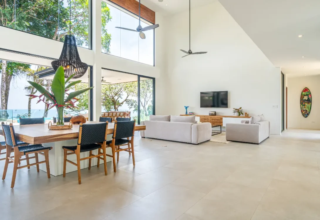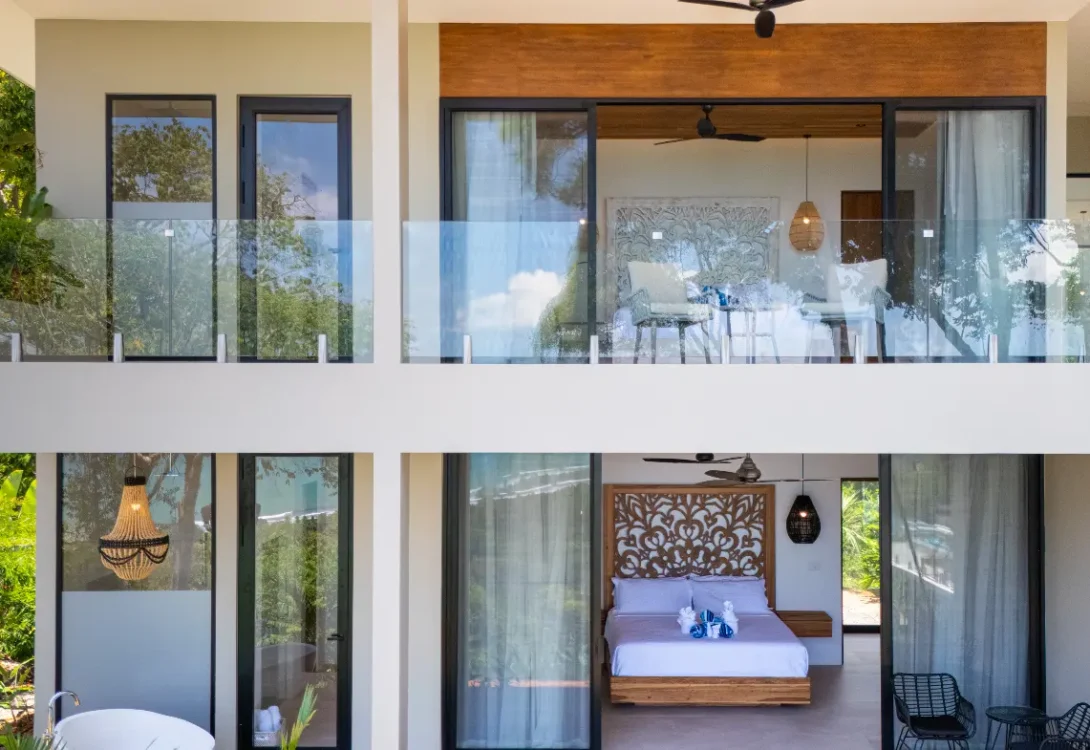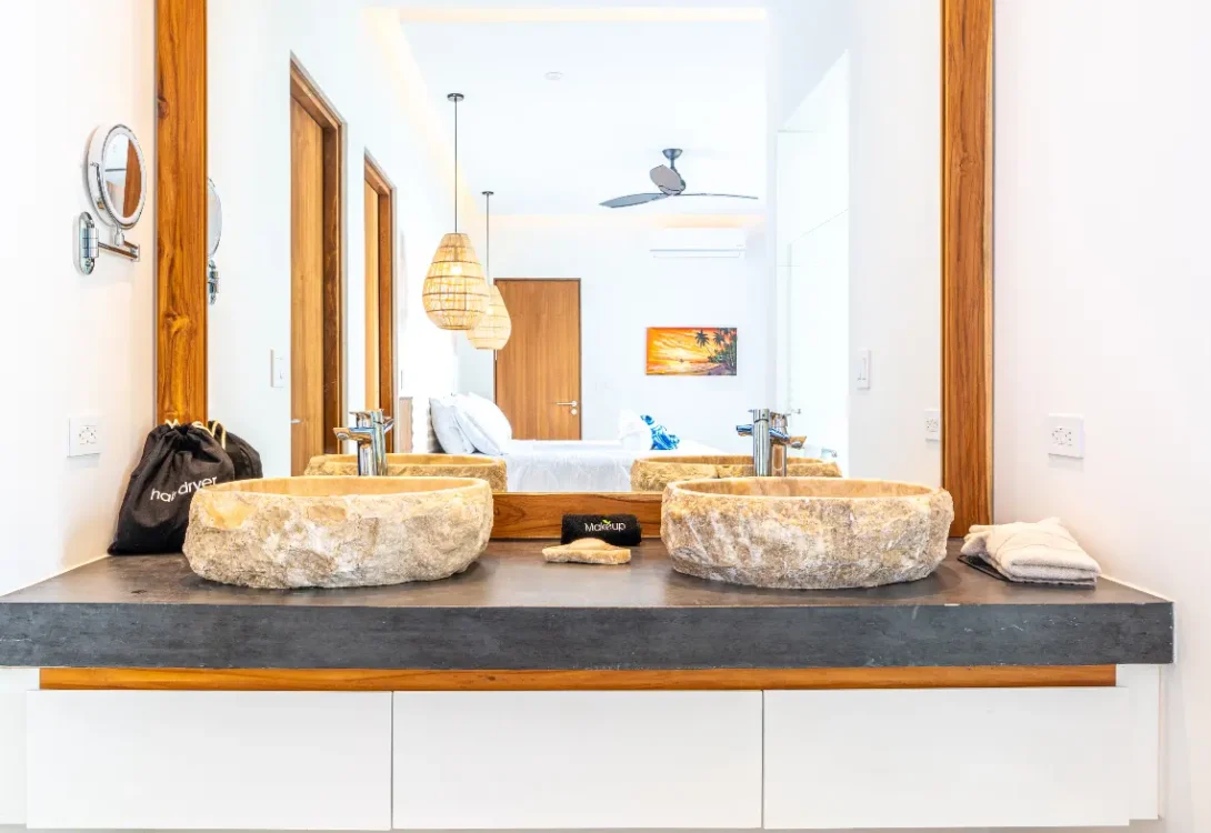 Entering this villa, you’ll find yourself surrounded by a harmonious blend of local and international artwork, setting the tone for a culturally rich and visually inspiring stay. Each of the four well-appointed bedrooms is adorned with floating king-size beds, each boasting its own distinct design elements, ensuring privacy and comfort. Additionally, the Oceanview office transforms seamlessly into a guest room with a full-size Murphy bed, perfect for relaxation or catching up on work while gazing out at the expansive sea.