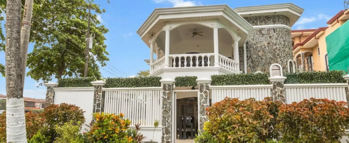 Located directly on the sands of Jaco Beach at the north end of town, this lovely 9 Bedroom Villa has a private beachfront swimming pool, covered outdoor bar area, comfortable seating area, dining area, bbq for grilling, and chairs for lounging in the sun. The ground floor entrance leads to the fully equipped kitchen, 5 […]